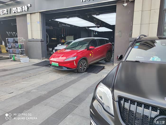 精洗的时间比较长,所以是需要提前预约的,洗车小哥已经在工位上就位了,车子一到,立马开工。