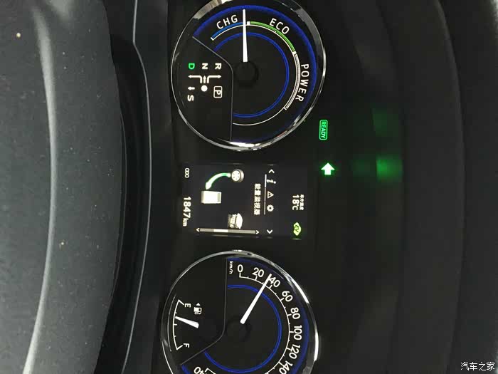 如果汽车未启动或者处于停车,再或者处于刹车完全踩死的情况下,指针肯定是在第一个刻度那里呈水平状态,指针低于刻度1,既处于chg范围内,代表此时正在利用动能给电机充电。。。指针在刻度2以下,证明此时车辆处于电机工作状态(可以理解为此时车辆行驶是用电)。。指针在刻度2以上表示燃油发动机介入。指针在刻度三以上,代表此时车辆正在猛喝油了,哈哈,此时瞬时油耗一般在20以上。。我对车辆完全不懂,所以很多用词错误或者不是很准确,为了让大家更加通俗易懂,简单理解为:1、chg区间,代表此时车辆正处于滑行或者刹车状态,会利用滑行或刹车产生的动能给电机充电。。2、eco区间,节能范围,如果指针低于eco中间的小刻度,证明车辆正在利用电机提供动力进行行驶(所谓的省油就是如此)。超过那个小刻度,燃油发动机就会介入了,简而言之,此时就不会省油啦。。3、power 动力区间,一般需要迅速起步或者超车时会到达这个区间。。