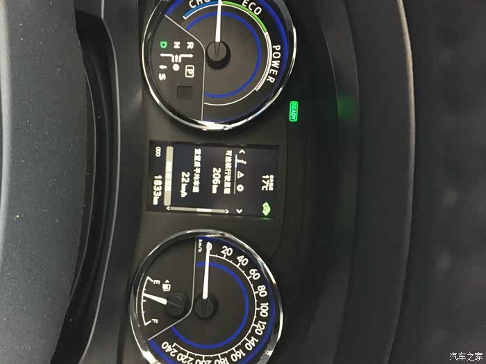 浅踩油门,指针低于刻度2(eco中间的小刻度),仪表盘中间会有一个EV的字母出现在屏幕上,此时代表电机提供动力。。所谓的省油就是在此时。。