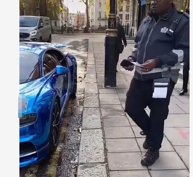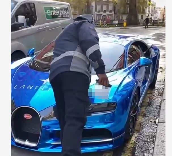 国外一位交警在巡逻的时候看见路边违停了一辆超级跑车,这辆布加迪超跑的价格超过3000万。交警第1次看见布加迪,走上前爱不释手的抚摸了一下引擎盖,好好感受了一下布加迪带来的强大视觉冲击和质感。