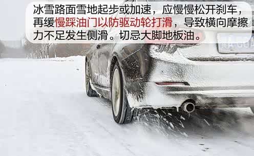 冰雪路面起步时应慢慢松开刹车或放离合,让车辆缓慢动起来后再轻踩油门。切忌一起步就大脚油,车轮打滑,容易发生侧滑现象。