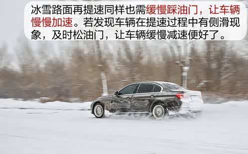 冰雪路面再提速要缓慢踩油门,让车速慢慢柔上去即可。不可大力加速,容易导致驱动力打滑,高速打滑更为危险。若在加速过程中发现车辆有滑移或左右摆动出现,应及时松掉油门抓稳方向盘,让车辆自行慢下来,不可大力刹车。