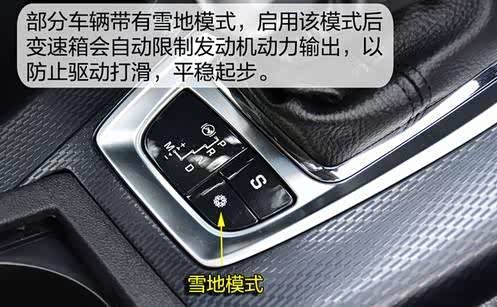 部分车辆带有雪地模式,让驾驶员更为轻松起步。雪地模式可让限制发动机动力输出,让油门反应迟钝,起步平顺些许。