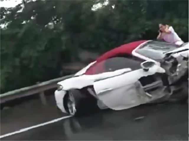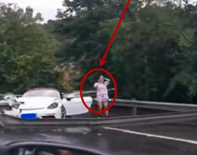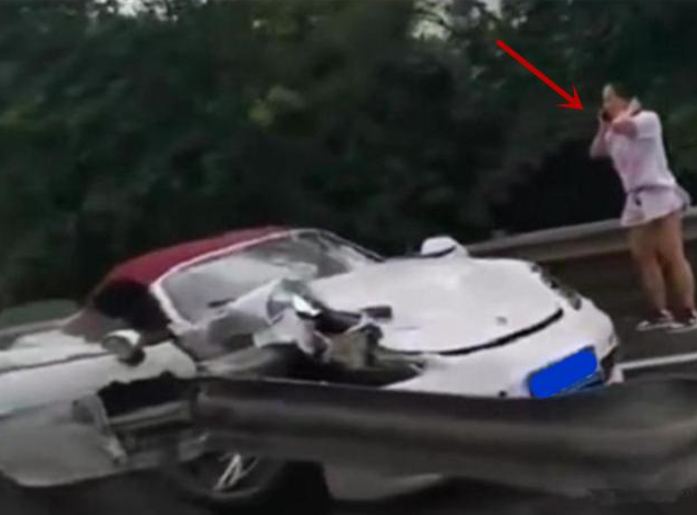 这辆保时捷的车速非常快,一路上吸引了不少车主的注意,一路上嗖嗖地跑,行至某路段的时候,不知道女司机是睡着了还是走神了,车身的方向发生偏移,女司机没有及时注意到这一点,在一瞬间高速往路边的护栏撞了过去,在巨大的冲击力作用下,保时捷车身又来了个180度旋转,这一幕非常惊险,如果期间车身不受控又撞上了别的车,那可就惨了。