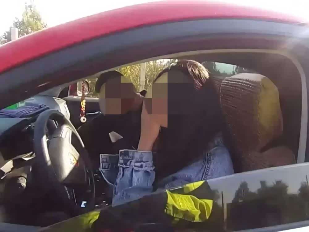 当执勤交警要求坐在驾驶位上的女子出示相关证件时,女子自称没有驾驶证,同车男子也称,“她只是练练车”。