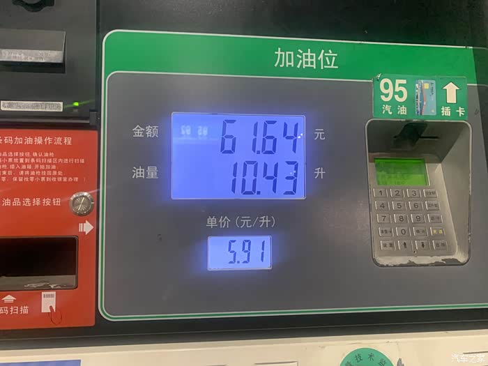 最终我们加油是10.43升,实际测的原厂油耗为9.06(115:10.43=100:9.06)