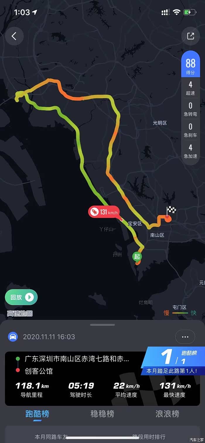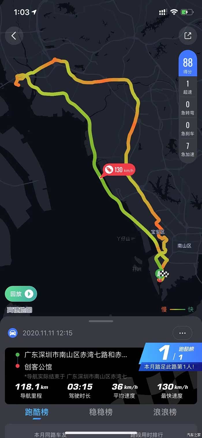 最终我们行驶了115公里,加油时的公里数为6755,由于操作失误,小计清零的时候清零了自启动后清零数据,再一个由于是外地车牌,测油耗当天在深圳下午限行,所以在东莞长安停留了一个半小时,回深圳的路上又是严重的拥堵,最终我们减去在东莞停留的一个半小时,我们用时是3小时40分钟,那么平均时速计算出来是31公里每小时,通过平局时速来判断测试原厂相对来说较拥堵。