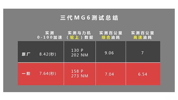 三代MG6目前标榜运动的当红主角,在二代短短上市三年不到的时间就迎来了三代的上市,早在二代上市就对标思域,豪言就算思域秒任何超跑我MG6都能秒思域,甚至还能追高铁这一系操作的确让二代的MG6名声大噪,让MG6有着不错的销量,而三代的上市其实并没有多大的变化与革新,只是在二代基础上做简单的优化,对于运动车型而言,年轻的朋友更多的可能是在乎它究竟有多大的改装潜力?今天在此就简单的做一个一阶段与原厂0-1的加速对比,马力机测试以及升级前后的油耗对比分析。