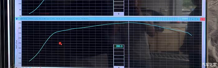 从图上可以分析出来改装之后最大压力值1.8个bar(正常情况下100kpaa就是0个bar,283kpaa这是就是1.8个大气压)而原厂最大的顺压是1.4bar。由于当时马力机的空燃比设备损坏,在此我也用了专业的设备测了空燃比数据。