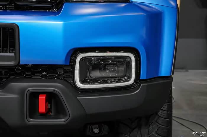 柴油国六版的BJ40 PLUS外观基本与现款汽油版一致,仅仅是装饰性的细节上有所不同。柴油版新车型的车头五孔式的中网格栅不再是镀铬材质的,而是改为了黑色。另外前杠下部中间位置的护板也是改为了灰色,而不是此前版本的镀铬材质,其实对于这种硬派SUV来说,太多的镀铬装饰反而显得不那么纯粹,这一次柴油版这些细节的调整让前脸更显粗犷硬朗。