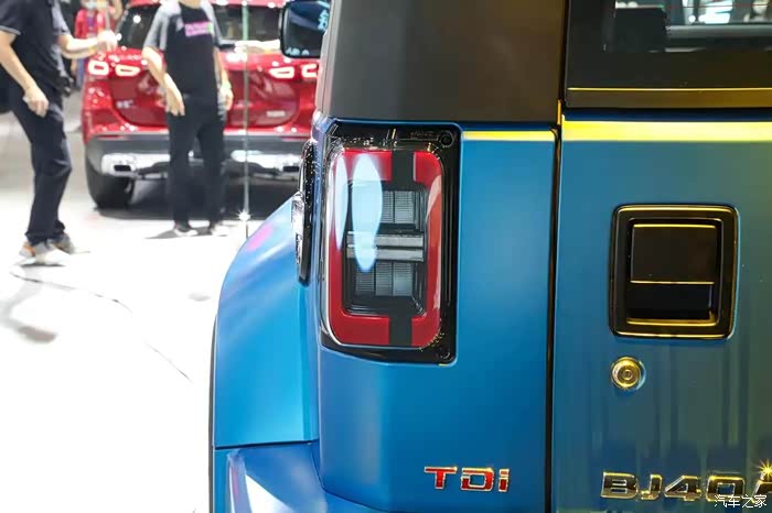 车尾部分的一个小的细节变化是,尾标BJ40后面用字母P取代了之前的C,而这辆柴油版车型依然在一侧带有红色的TDI标志,显示着气柴油车的身份。