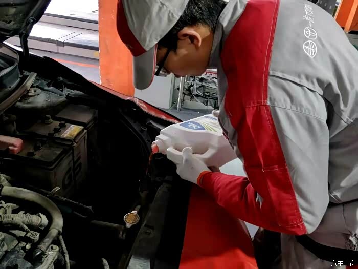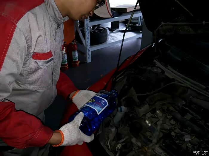 防冻液缺了一点点,这回也给加上。