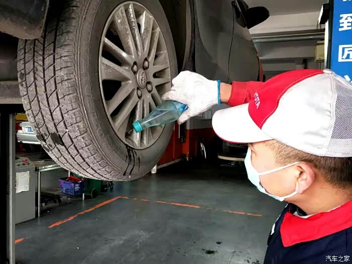 我发现一个细节,他们每次检查轮胎都会检查气门嘴有没有漏气。