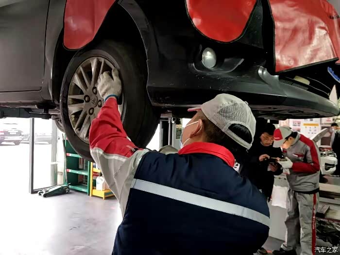 这么冷的天,并不是所有的丰田师傅都有马甲,这个师傅应该级别高一些,穿了一个带丰田logo的马甲。