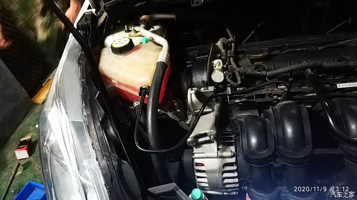 装好后,这个车发电机皮带没得张紧轮,这个皮带装老火了,这个皮带先把其他装上,皮带带上发电机底下那颗螺丝先上再把皮带憋过去,然后再用撬棍翘发电机对位置在上螺丝,这个皮带很麻烦。
