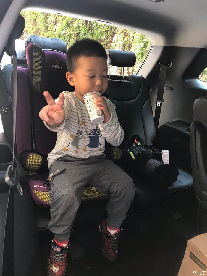 第三排儿子专属位,背着小米净化器,不要污染的空气。