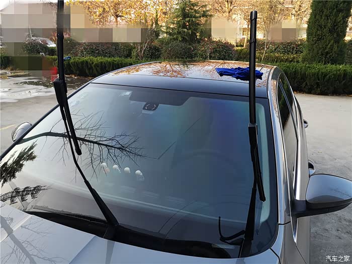 一定要记得拿下雨刷,要把支架放下,下面垫上个毛巾,防止损伤前档,那可就笑了。