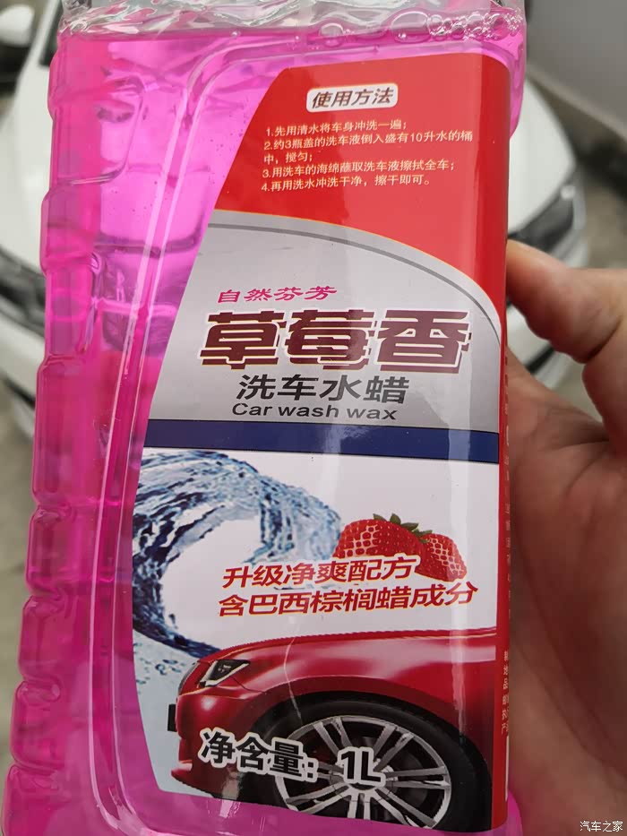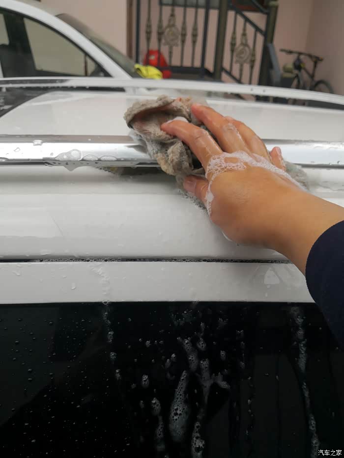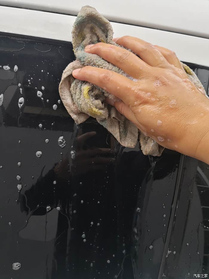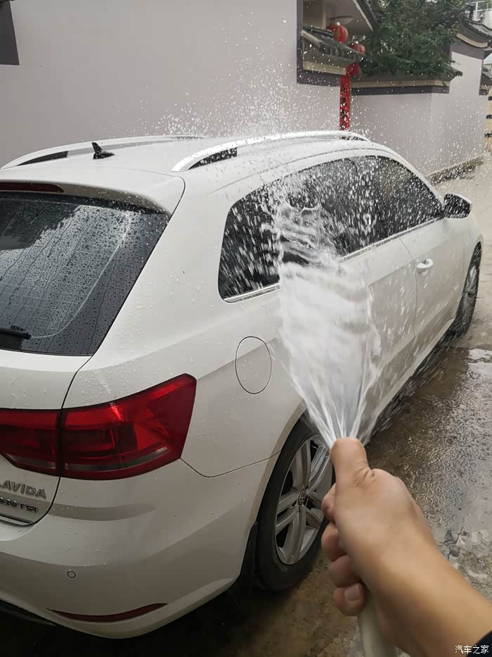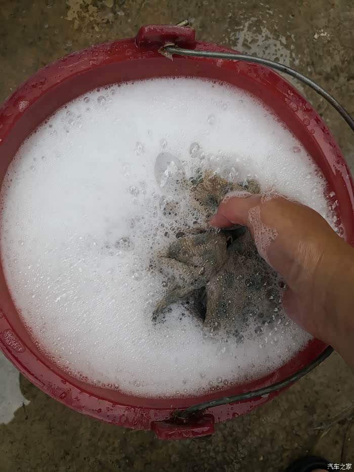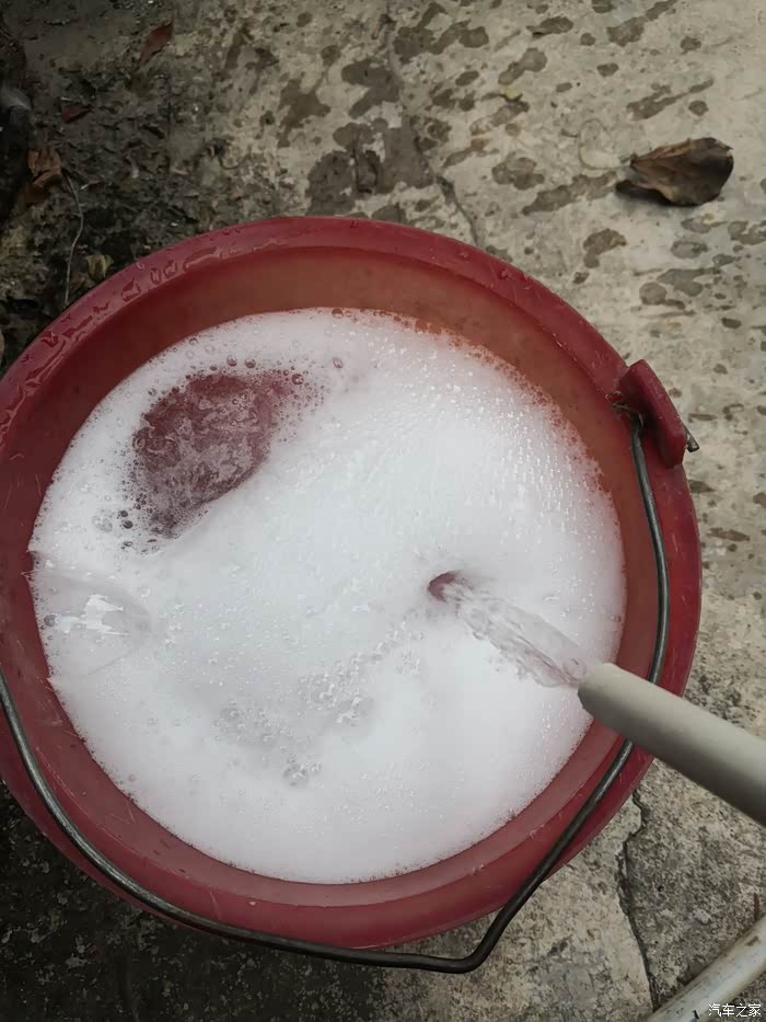 先看了看洗车液的说明,先把车身上的浮尘和砂砾用水冲掉,洗车液按比例兑好在小桶里,加上水,车身每个地方都干干净净的擦一下。