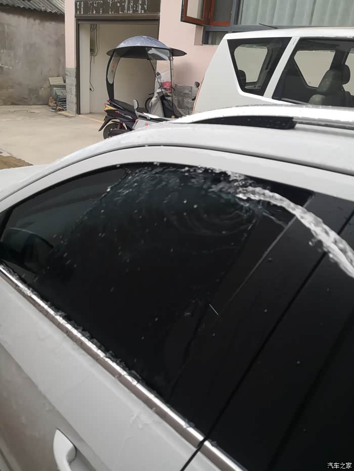 全部洗完之后,用清水冲一下,小朗就变得干净又亮堂了,说是蜡水洗车液,看看效果。别的先不说,玻璃上的驱水效果还是不错的,说明女司机的这份礼物,还是有点用的。不过,我想给马某云提个建议,下次能不能在商品上备注:“女司机专用”……