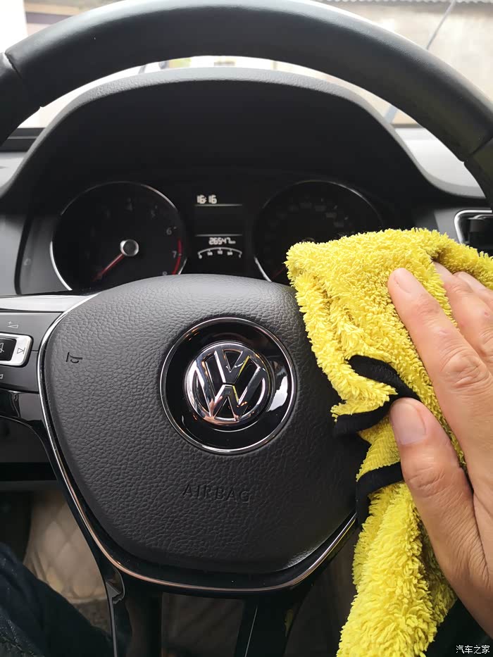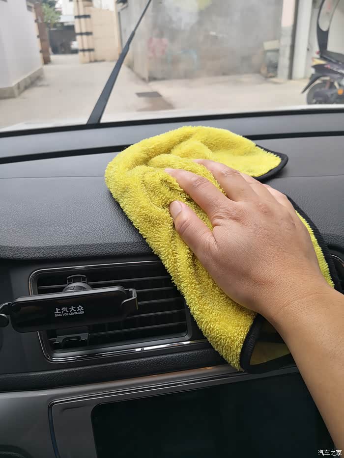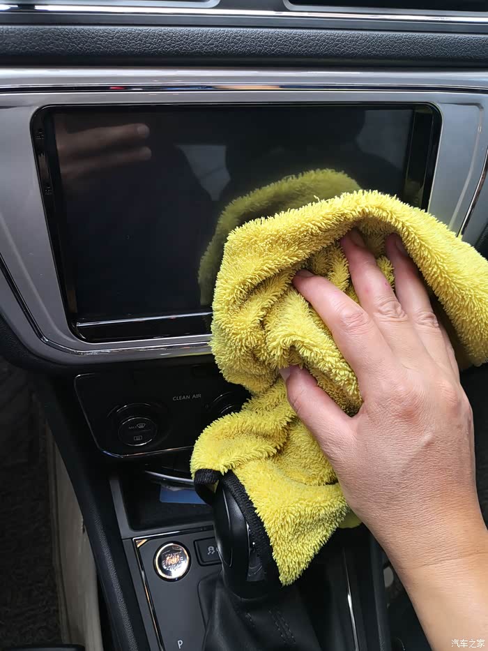 最后一个工序就是找一个干净吸水的毛巾,把车身上的水分都擦一下,为了让女司机开车,心情更舒畅内饰也要认真的,擦干净的别辜负了送礼物的一片好心啊!