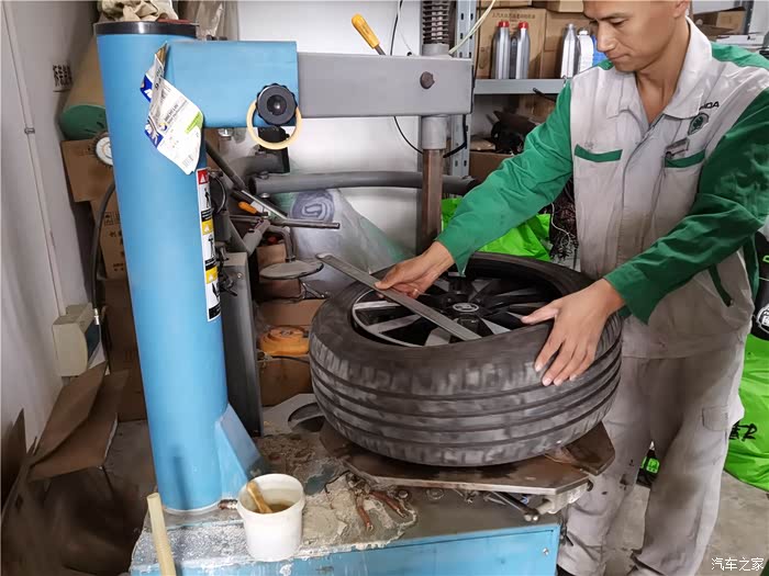 现在拆个轮胎非常方便,省了很多人力,不像原来,全靠人力,要好长时间,我看师傅很轻松。