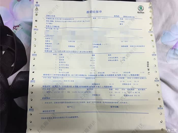 结账,一共花了950元,给打了折扣,原价1300呢,包含工时费。店里的服务质量还是非常满意的,这下小柯又可以驰骋了,不用再跑60以下了。