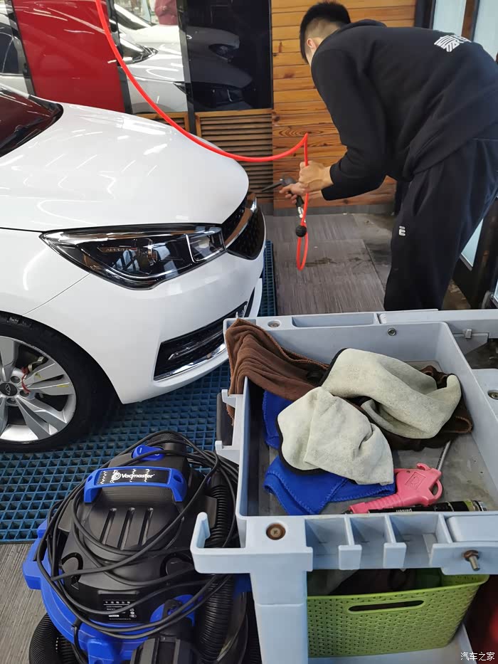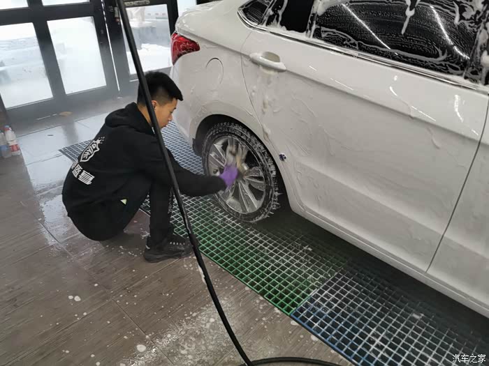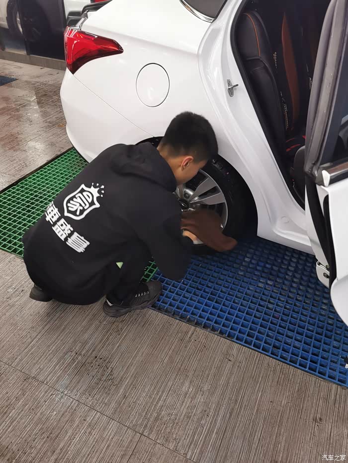 拍了一张其他车的清洗细节,擦干净之后还用手电照照,
