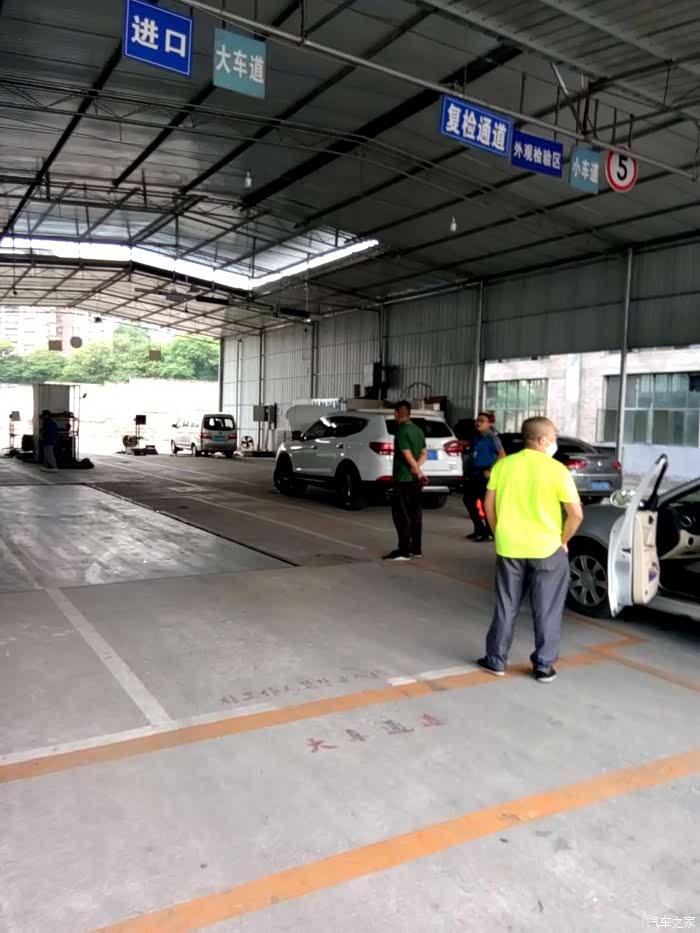 自己找一下本城市车少的检测站,这样会节约你排队等待的时间,去检测站路上用运动模式高转速跑跑据说对检测尾气有好处,是不是真的,无从考证,也无科学依据,宁信其有的态度自己拉了下高速。进场就有引导员引导到外观登记位,交行驶证,把感应钥匙放车上,我是脚刹,要给检测员说下(有个女检测员把我脚刹当开前盖的了