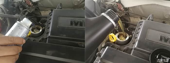 上次保养拍照留下的图。左图加润滑养护剂。右图添加保养机油。对于这款4L大瓶机油里就不做介绍了。瓶身有专门的把手可以拿取,很是方便,毕竟4L机油不轻。醒目的黑钻级三个字,彰显与众不同的身份!