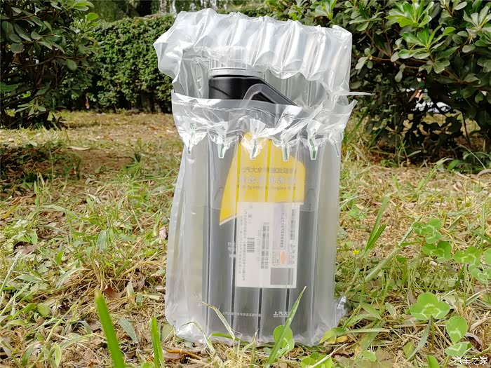 不说那么多废话了,直接开箱验货!1L装的机油防护的还是比较到位的,有空气防撞保护膜。去掉保护露出真容,黑黄色的瓶身,很显眼。