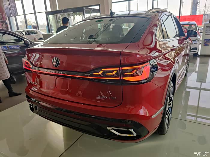 朋友的大众朗逸到时间要保养了,他车子已经过保了,还是愿意去4s店保养,他说市场很乱假机油很多,搞不好就中枪了,不如多花几十在4s店做保养还有保障,服务顾问告诉我们保养要40分钟左右,我们也就闲来无事,就想去展厅看看有没有什么新车,也看看朋友的朗逸有没有什么大的变化,刚走过去,还没有看朗逸,突然间我发现了很亮的一辆车就是这款途观X,之前途观L就已经很漂亮,这辆新款途观X一下就进入了我的眼睛,时尚的外观,炸眼的靓丽的红色,下催的流背设计,这就把我给留在这车跟前,听销售顾问说这是刚上市的新车,我就说嘛,怎么原来没有见过呢。