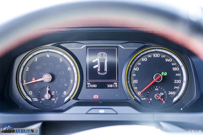 途岳的仪表盘依旧是经典的大众双圆式仪表,信息简单易读。为了迎合途岳年轻群体的定位,在仪表盘的外圈上还增加一条彩色圆环。