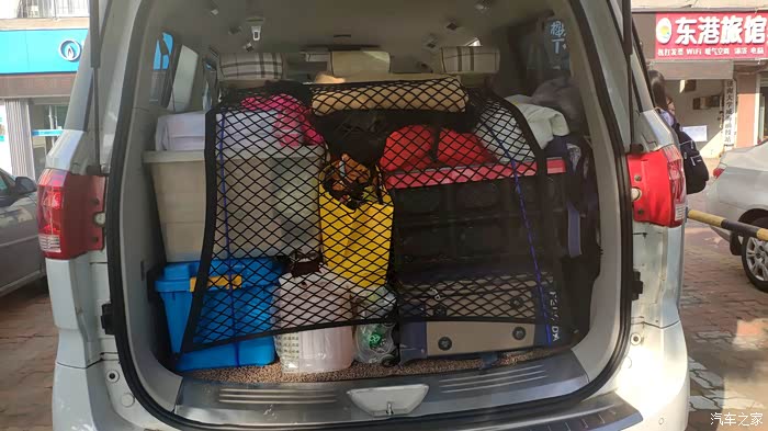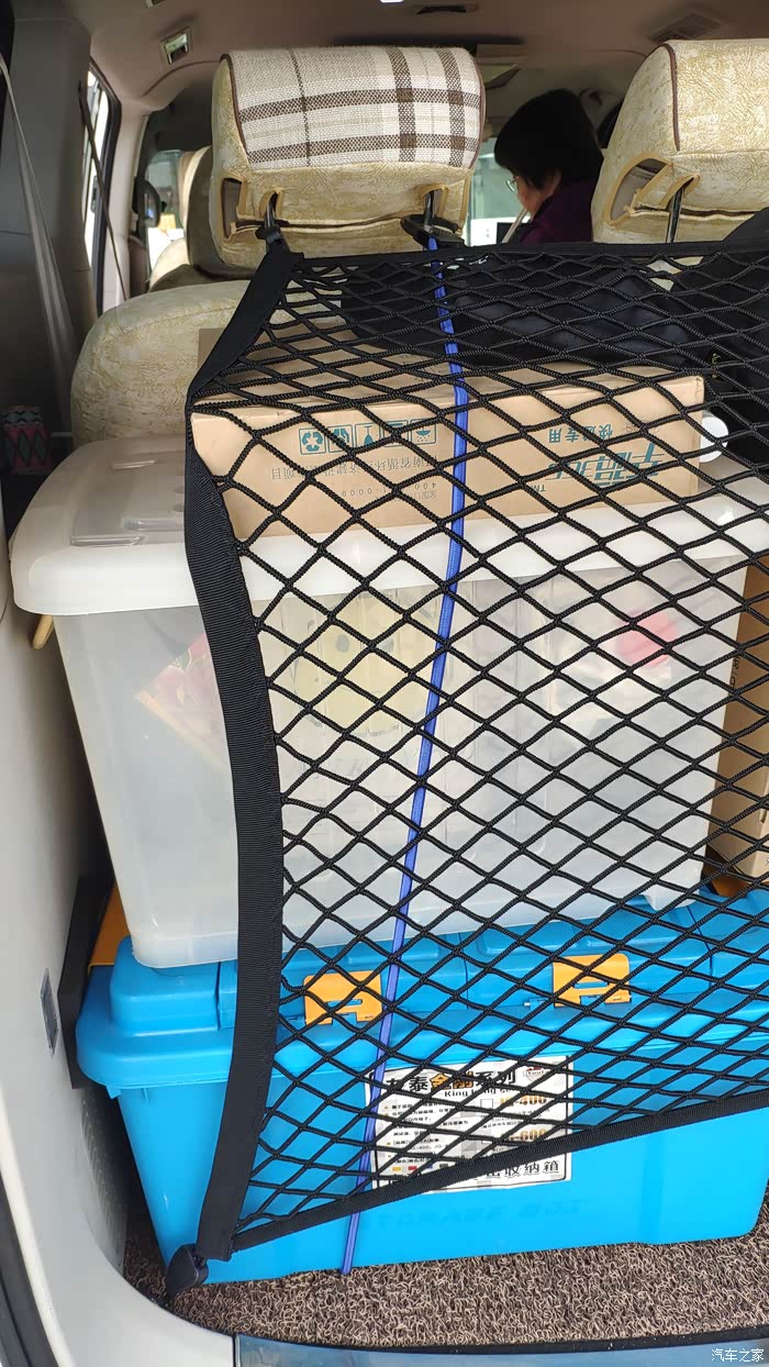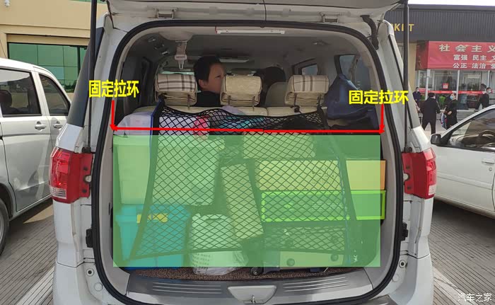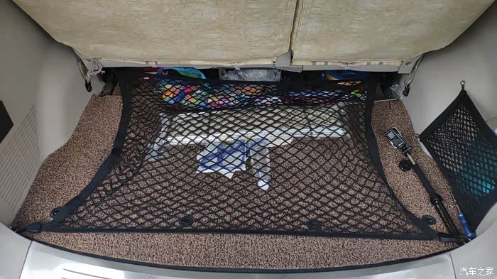 也有的车友是打了四个固定环,另一对固定环是在尾门中间的两侧,行李网是竖起来的,大体就是下图的效果,大家可以参考下。要是这种用法的话,行李网就不用太大了。