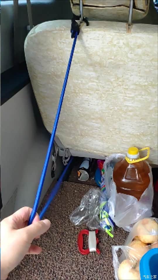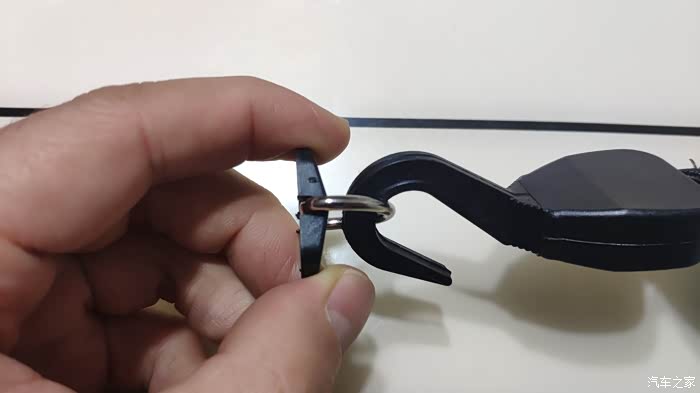一种情况是后备箱东西非常多,需要防止开门滚落的情况,这个时候,上端直接勾到后排座椅的头枕支柱上就行了。