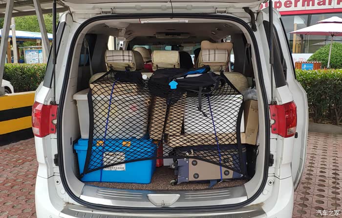 大通后备箱空间挺大,放东西非常方便,一般出行携带行李箱等都不是问题。但遇到物品比较大小不一,难以整齐码放的情况时,如何固定这些行李物品也是个问题。