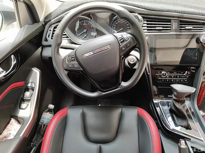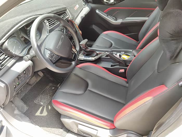 前排空间大,整车内饰黑红搭配,很具运动气息。