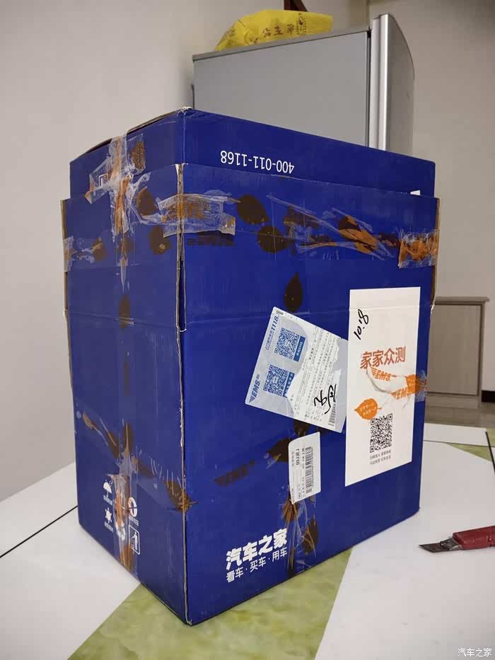 因为这款物品体积过大,所以使用了两个箱子套在一起才能放下。胶带缠绕的很紧,被我暴力才能打开。
