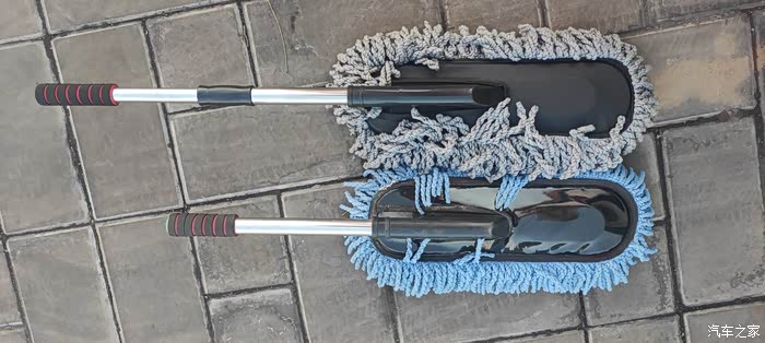 背面对比一下,绿之源汽车除尘掸子采用皮革设计,感觉上很高档。