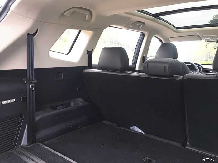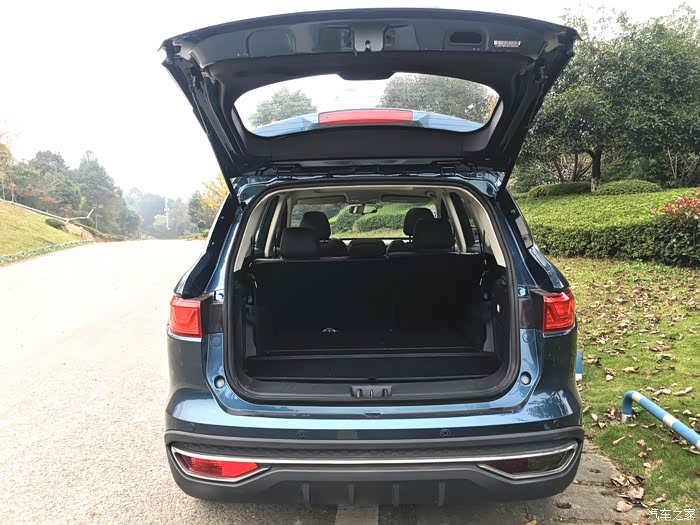 后备箱空间足够宽敞,第三排座椅收起后,可以放更多东西。