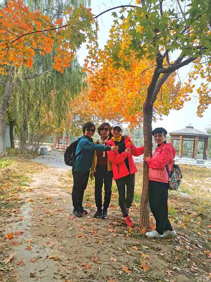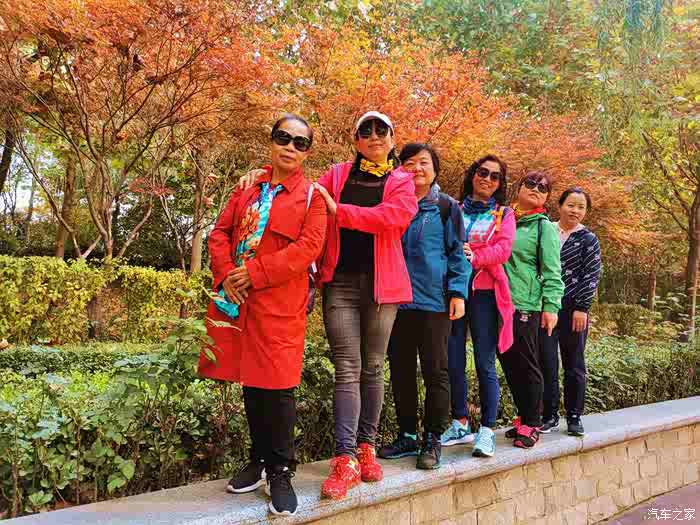 路边的枫叶正红,美女们合影留念。