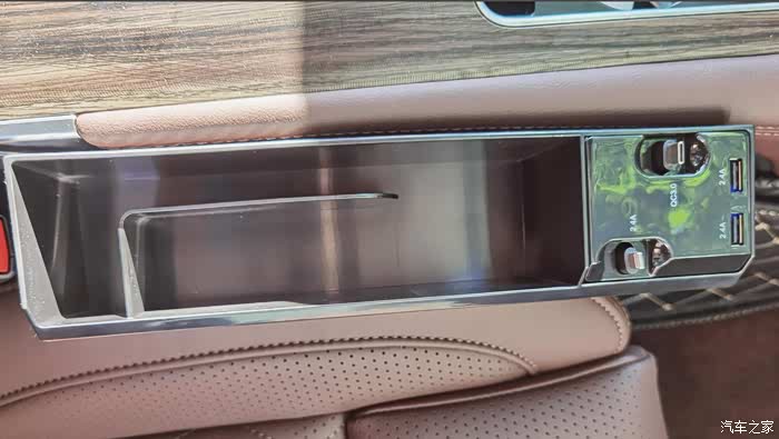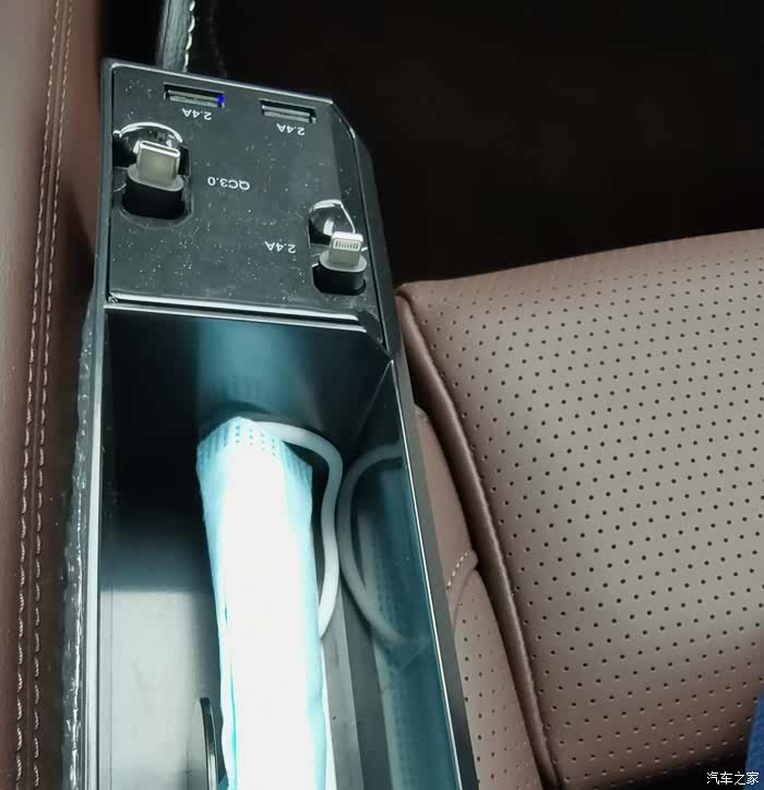 椅缝收纳盒带伸缩充电线。