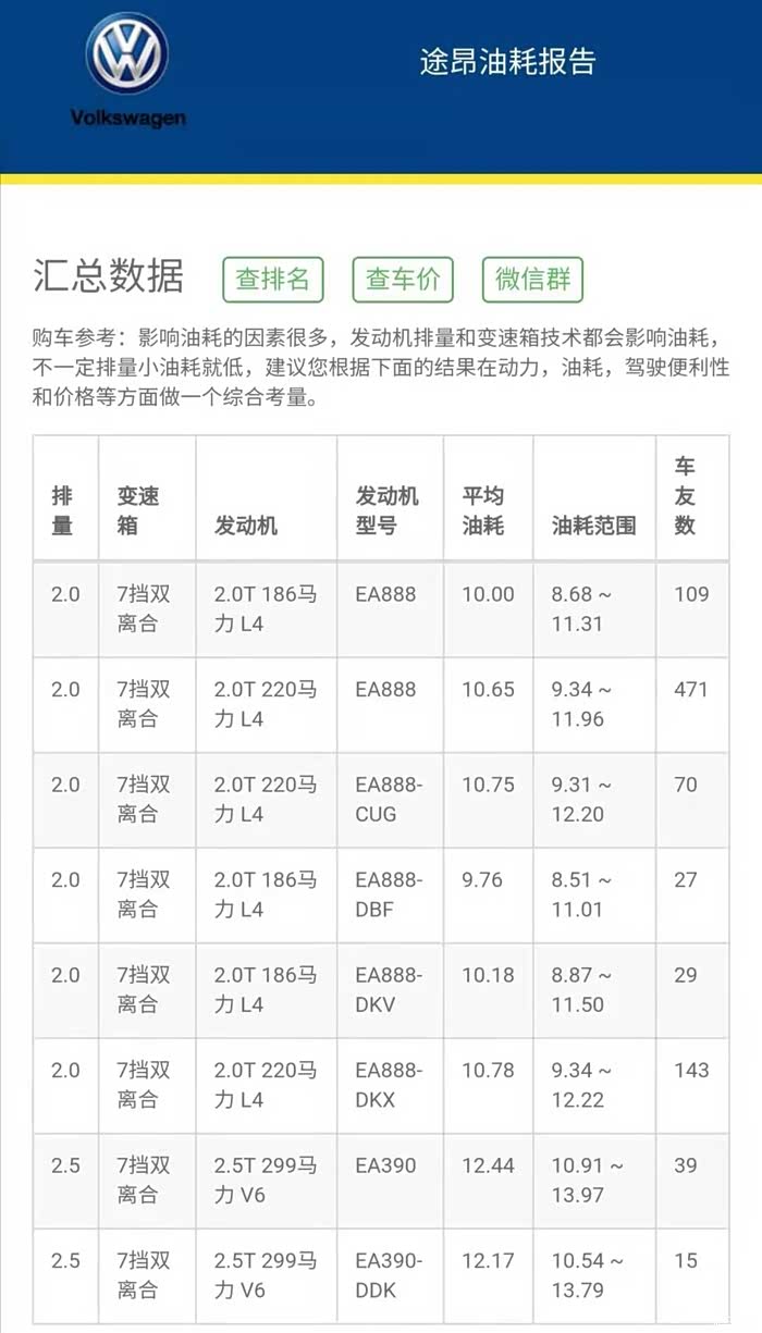 对比传统燃油车:17楼 小熊油耗车友 燃油车平均油耗数据