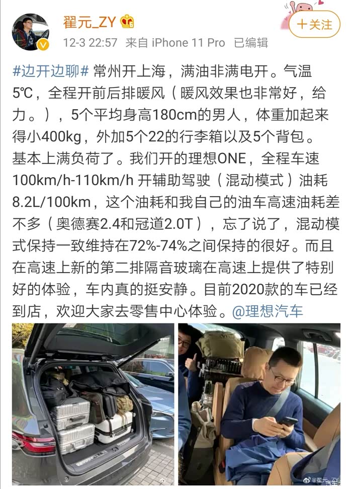 高速工况油耗是理想ONE的油耗上限 ,假设欢乐表显油耗有所粉饰,8.5+1=9.5L,