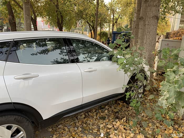 金秋十月,出去一趟,路边没停车位了,只能扎在树下面了