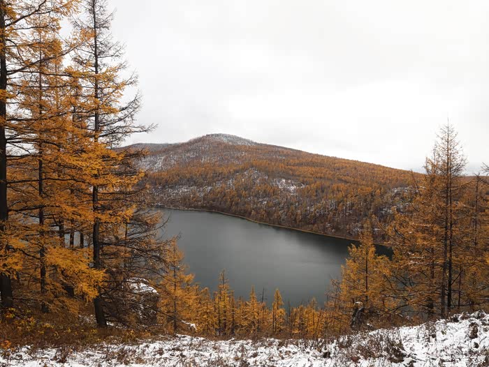 越往阿尔山开,下的雪越大,来之前就看过导航,显示我们经过雨夹雪的路段。结果在去往阿尔山盘山的路上就遇到了雨夹雪。