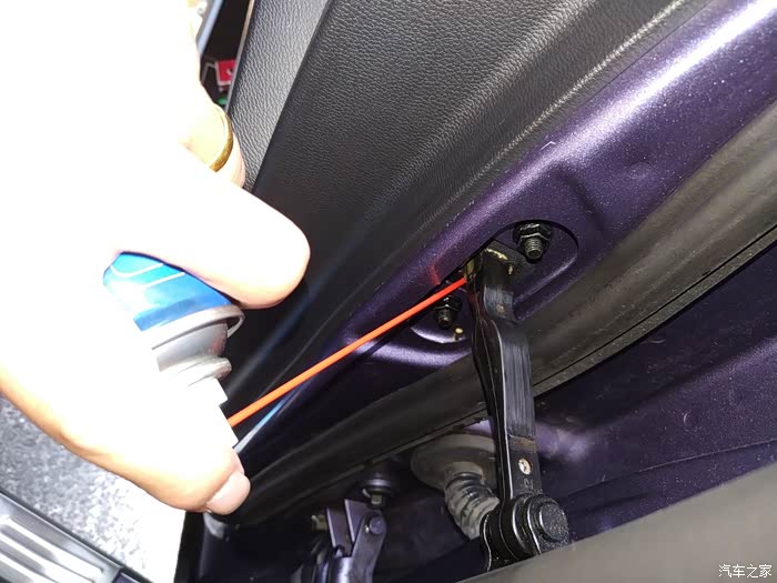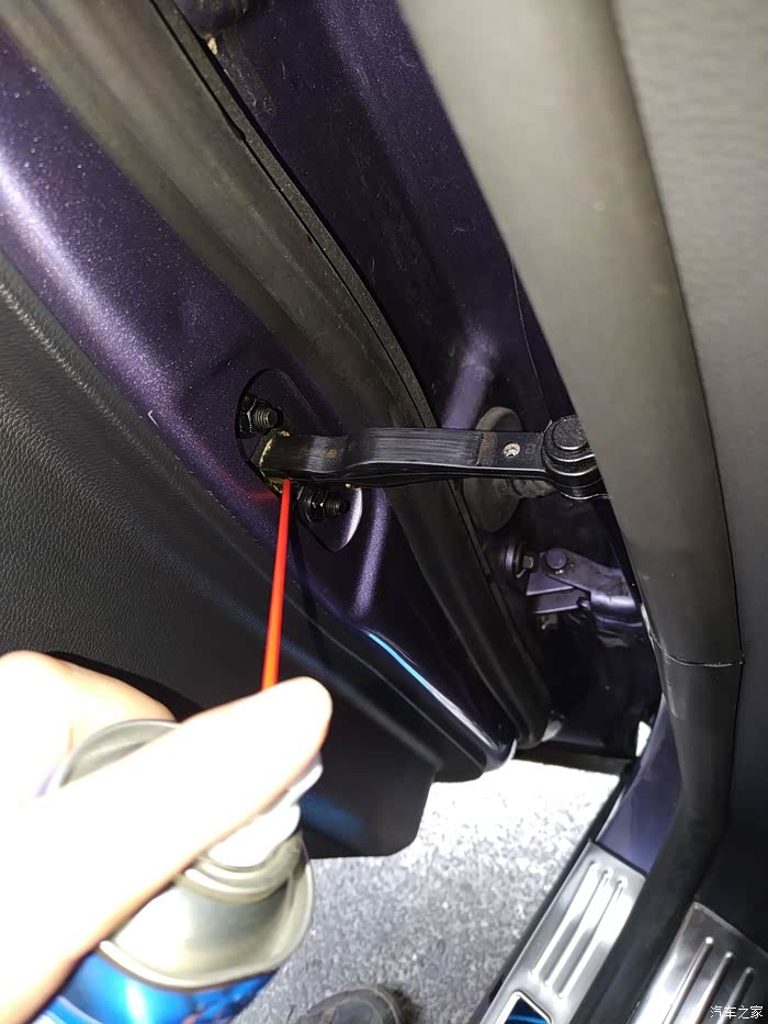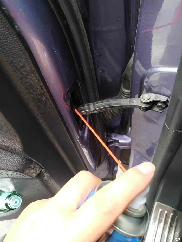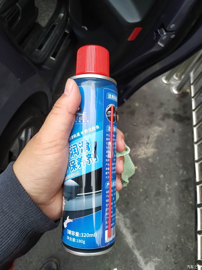 解决开门异响的方法,这车啥都不错,就是异响多了点,我主驾还好也不是很响,可能是我开关次数多吧,但是副驾和后面2扇门,每次都响,我4s店他们也就是说用润滑剂弄一下好了,好吧,我自己买瓶试试,润滑剂的使用也很简单,直接把瓶身上的小管子插在喷头的小洞里,我分喷的话要里外都喷一点,这样感觉效果好点,外就是看的到的黑色的铰链,内就是管子申进去,有橡胶的那里,喷一点进去,然后门开关几次,在喷一点,来回和2.3轮,基本就没有声音了,不知道这个能坚持多久,反正一瓶能用好几次,有声音了在弄呗。