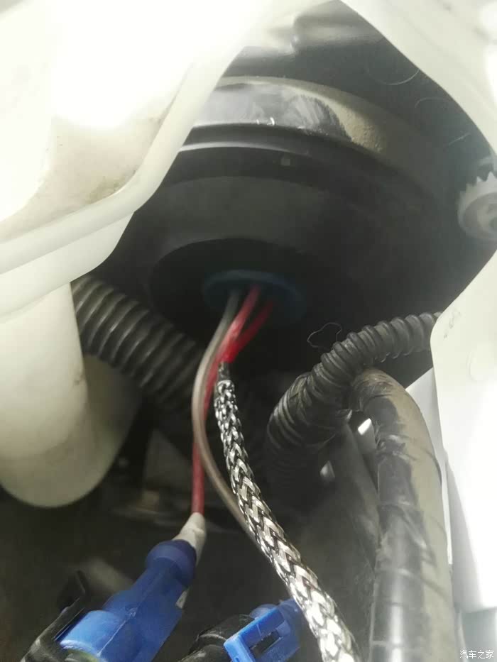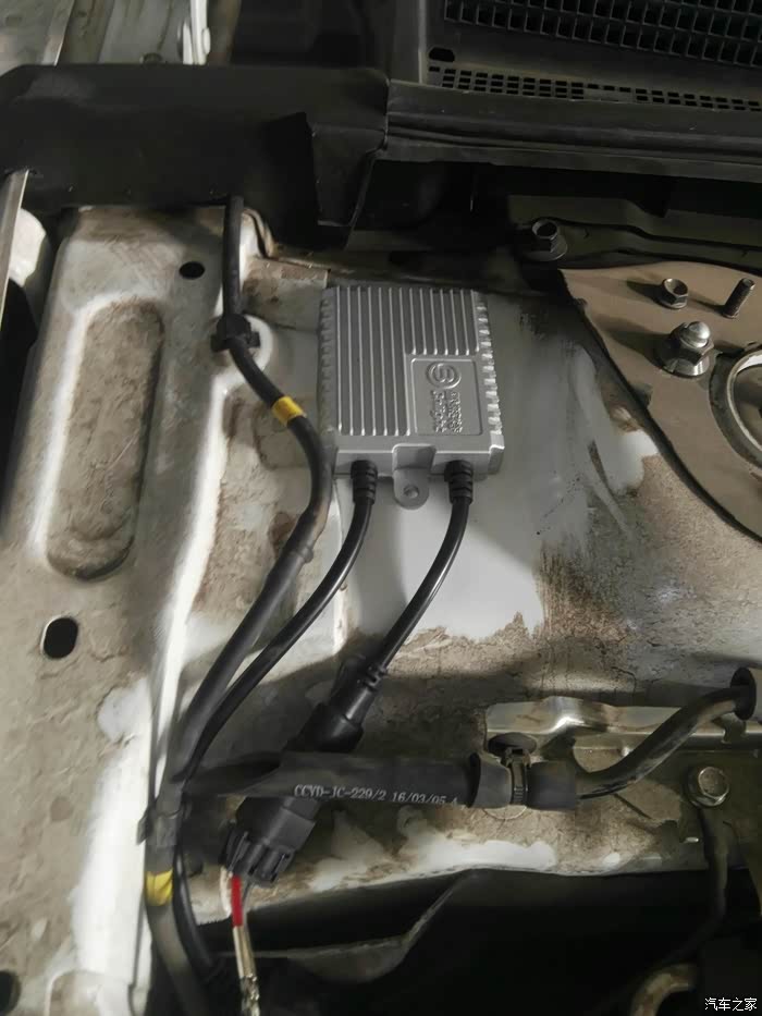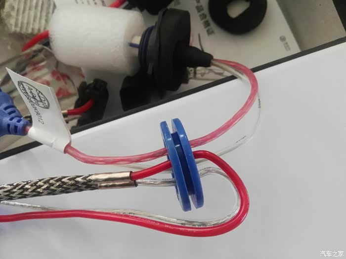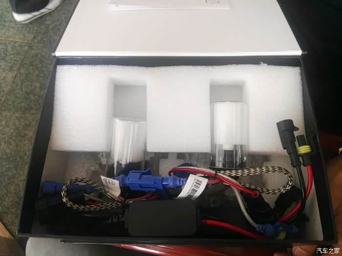 安装完后盖的效果蓝色为氙气灯后面保护圈。蓝色接头为氙气灯带的接线口(原车匹配)自此,原车灯改装氙气灯自此完工,因为赶着回单位,所以没有试灯,这给晚上试灯留下隐患,后面上图,