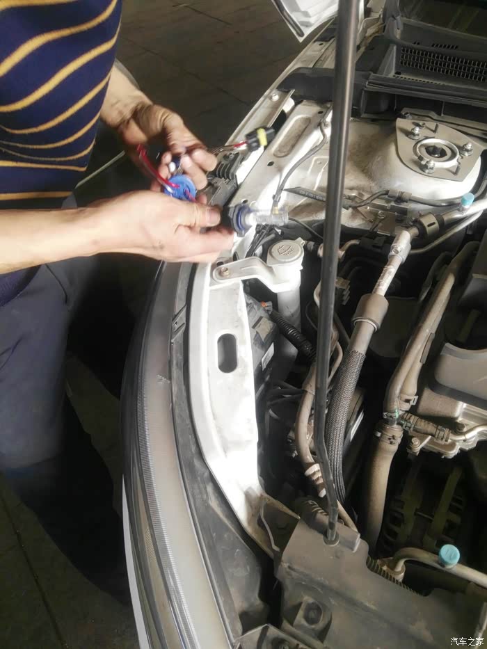 把氙气灯塞进灯口里,原车线路对接,先试灯,