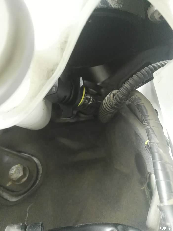 打到远光同样没有聚光,自己动手拆开保护罩发现装灯的师傅粗心没有把灯脚放平,没办法,只好带上手套 自己扒开线束,把灯脚放平,完美解决问题。