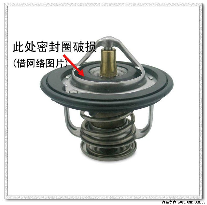 打电话问了4S,回复说节温器有货,马上到4S换上了新节温器,用时一小时。换下的节温器密封圈破损,被4S回收,借网络图片来说明一下。